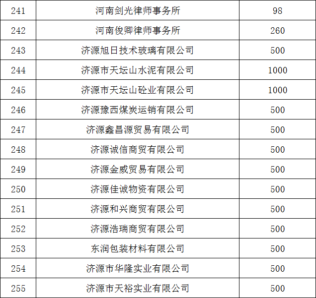 济源市慈善总会第三届会员代表大会 会员名单