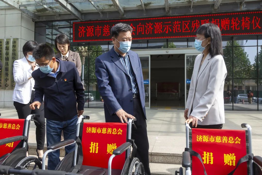 今年5月15日是第32个法定“全国助残日”,为大力弘扬人道主义精神,发扬团结互助、平等友爱、扶残助残的良好社会风尚,当天上午,济源慈善总会在示范区残疾人联合会康复服务中心楼前开展轮椅捐赠仪式,市慈善总会会长卢远出席会议,示范区民政局副局长、市慈善总会副会长兼秘书长王雪锐主持活动,市慈善总会副会长孔东征、示范区残疾人联合会理事长狄丽雯参加活动。