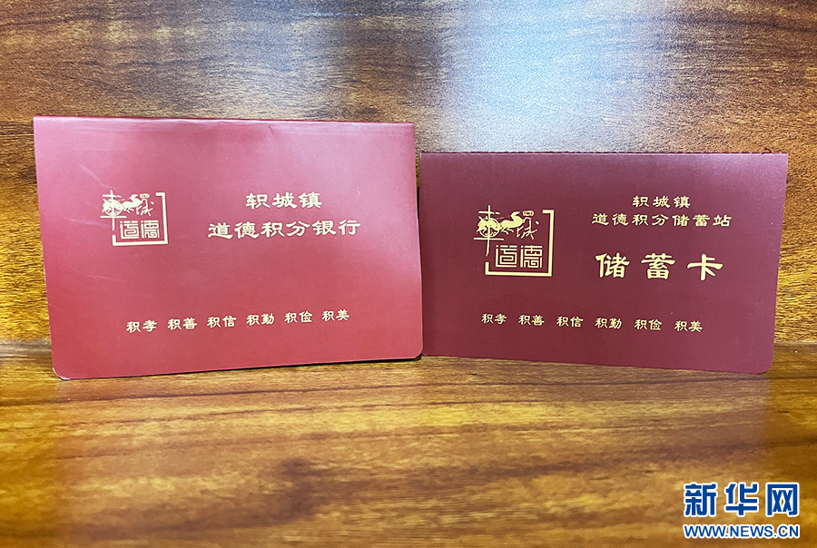 图为轵城镇良安新村“道德积分”的实施细则和储蓄卡。范作言 摄