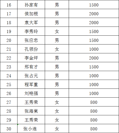 2019年第二季度临时救助名单