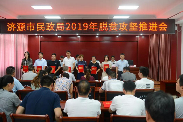 6月21日,市民政局召开全市民政系统脱贫攻坚推进会。会议贯彻落实省委全会、全市脱贫攻坚第七次推进会会议精神,总结回顾2018年以来我市民政系统脱贫攻坚工作,分析当前脱贫攻坚工作形势,对打好打赢今后一段时期的脱贫攻坚战进行安排部署,市扶贫办副主任卢新科、民政局局长苗春芳作重要讲话,并对2018年脱贫攻坚先进科室和个人进行表彰。